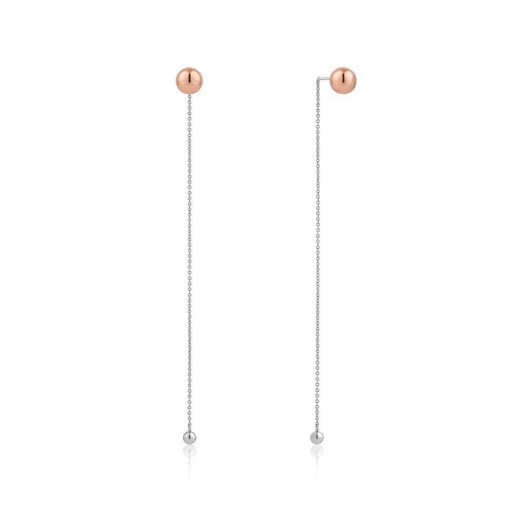 Ania Haie sterling silver and 14ct rose gold plated Out of This World Orbit long chain drop earrings.