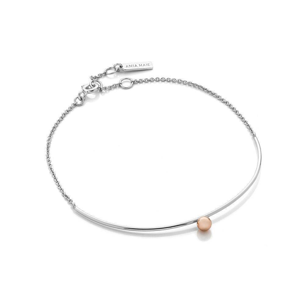 Ania Haie sterling silver and 14ct rose gold plated Out of This World solid bar bracelet, with adjustable length.