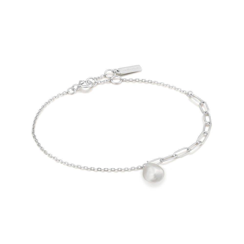 Ania Haie sterling silver bracelet with a drop baroque pearl and some chunky feature links. Perfect for stacking with chains or bangles or wearing solo as the main event.