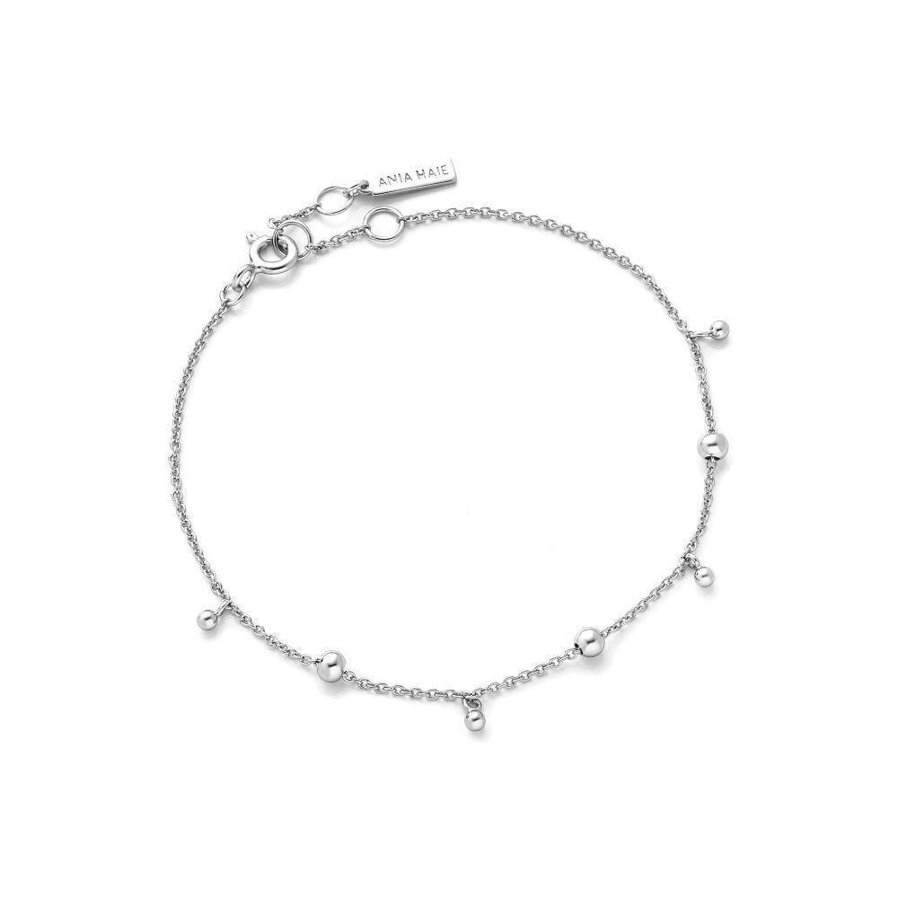 Ania Haie sterling silver bracelet with ball drop pendants. A modern take on a classic bracelet, looks great worn alone or stacked alongside other bracelets.