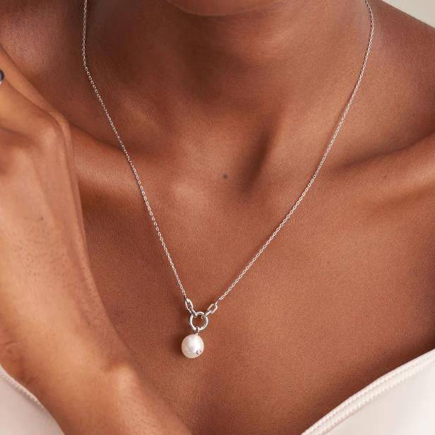 The statement pendant you didn’t realise your collection was missing this season. Discover this Ania stunning pearl pendant necklace, pairing a delicate silver chain with chunky link detailing and a pearl drop, perfectly finished with a single shimmering cubic zirconia stone. Crafted in sterling silver. 45cm length with a 5cm extender.