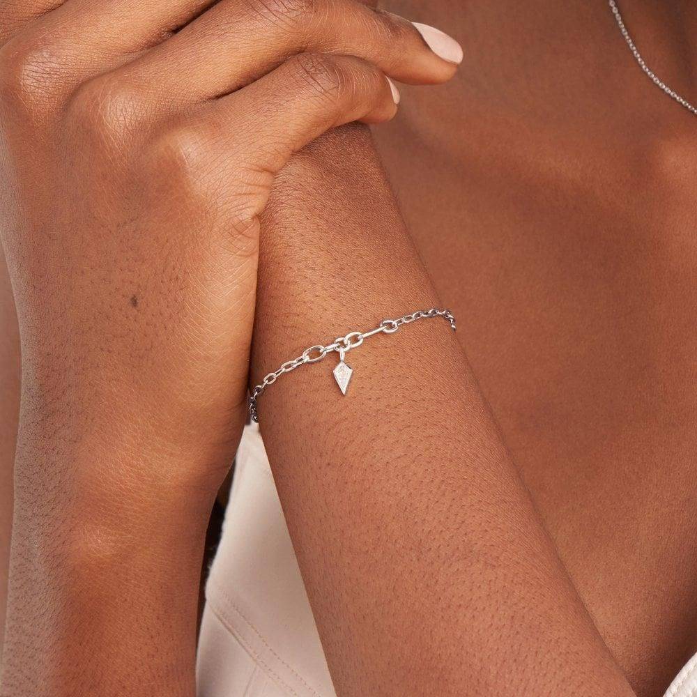 Pairing up sparkle and on-trend chunky chain details, opt for a silver cubic zirconia bracelet to add some shine to your party season looks. With a shimmering faceted CZ drop pendant and adjustable sizing, it’s the perfect chain bracelet to wear solo or add to a stack with others for extra sparkle!
