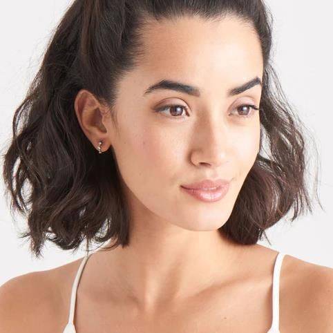 Ania Haie sterling silver huggie style earrings set with sparkling cubic zirconia. Add a little sparkle to your earring stack. Earring size 12mm.