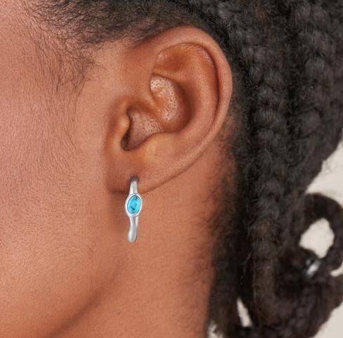 Ania Haie sterling silver huggie style hoop earrings with a turquoise coloured stone. Earrings measure 12mm.