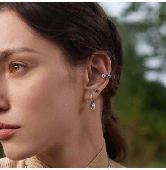 Up the ante when it comes to statement earring stacks with a bold piece that serves all the sparkle. This super-chunky ear cuff is finished with a cluster of shimmering cubic zirconia, crafted in rhodium-plated sterling silver. Simply slide on and style with classic silver huggies for an attention-grabbing ear party.