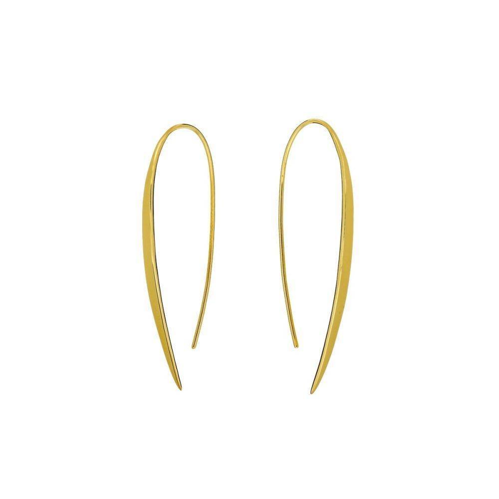Azendi gold plated slim hook through style drop earrings. A simple and elegant deisgn. Length 50mm.