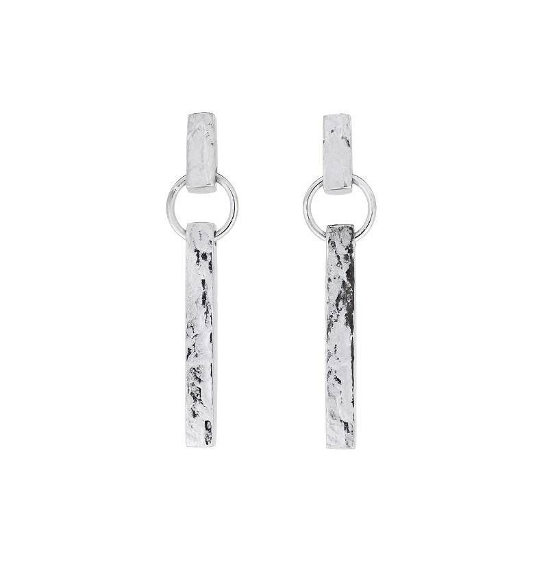 Azendi sterling silver Malham cover bar drop earrings inspired by the breathtaking limestone cliff and pavement found at Malham in the Yorkshire Dales. Malham Cove is a 70 metre tall, curved cliff of white limestone. A distinctive and dramatic landscape sits above the cove, made up of a series of flat horizontal slabs of limestone, separated by fissures in the rock. This distinctive and rare habitat is a spectacular sight to behold. Length 30mm.