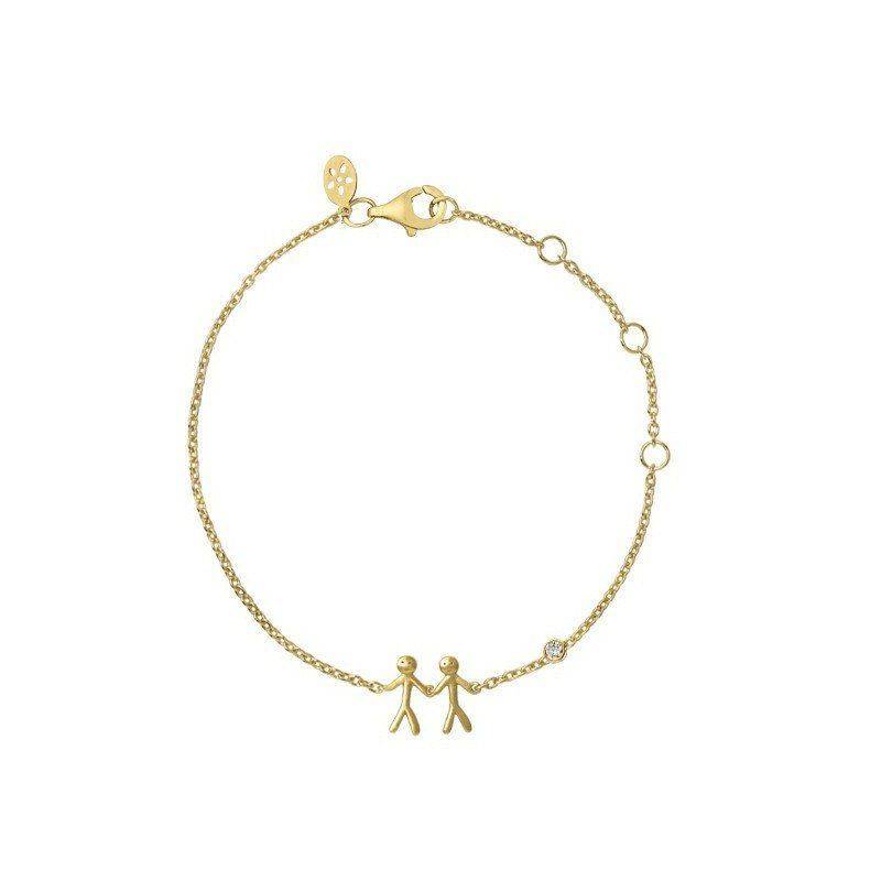 byBiehl 14ct yellow gold plated on silver Together My Love bracelet with an adjustable length. Each person is 10mm tall.