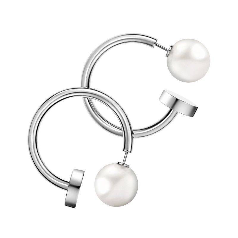 Calvin Klein stainless steel Bubbly hoop earrings with white pearls.
