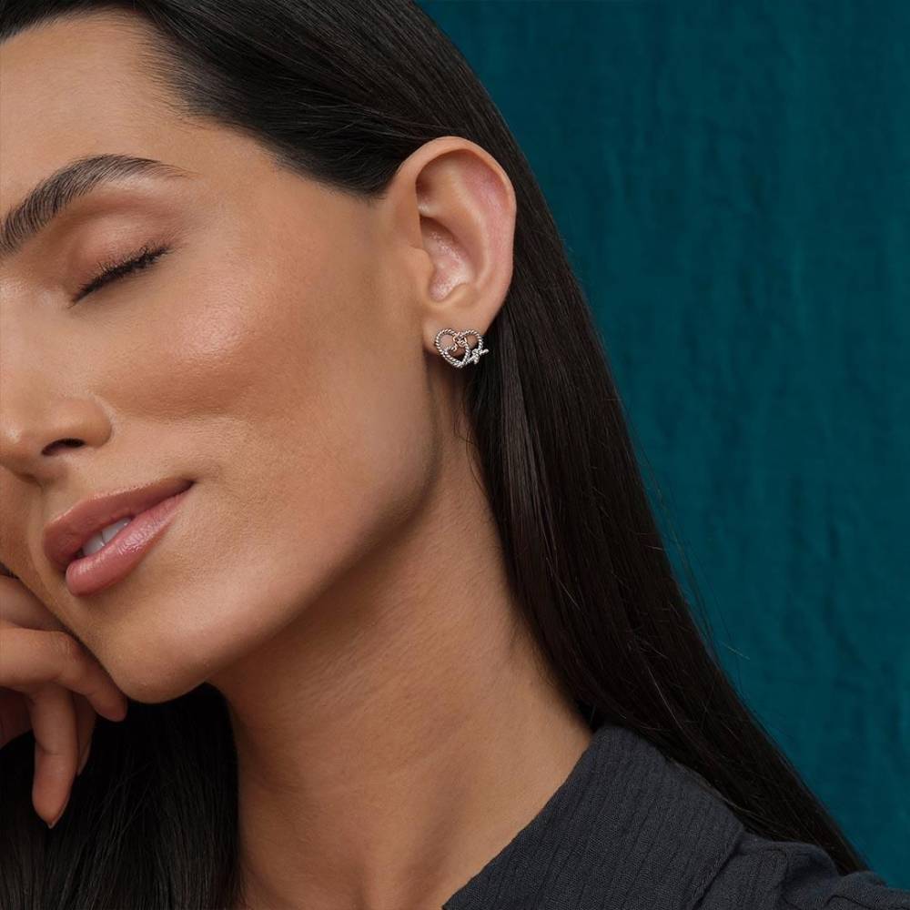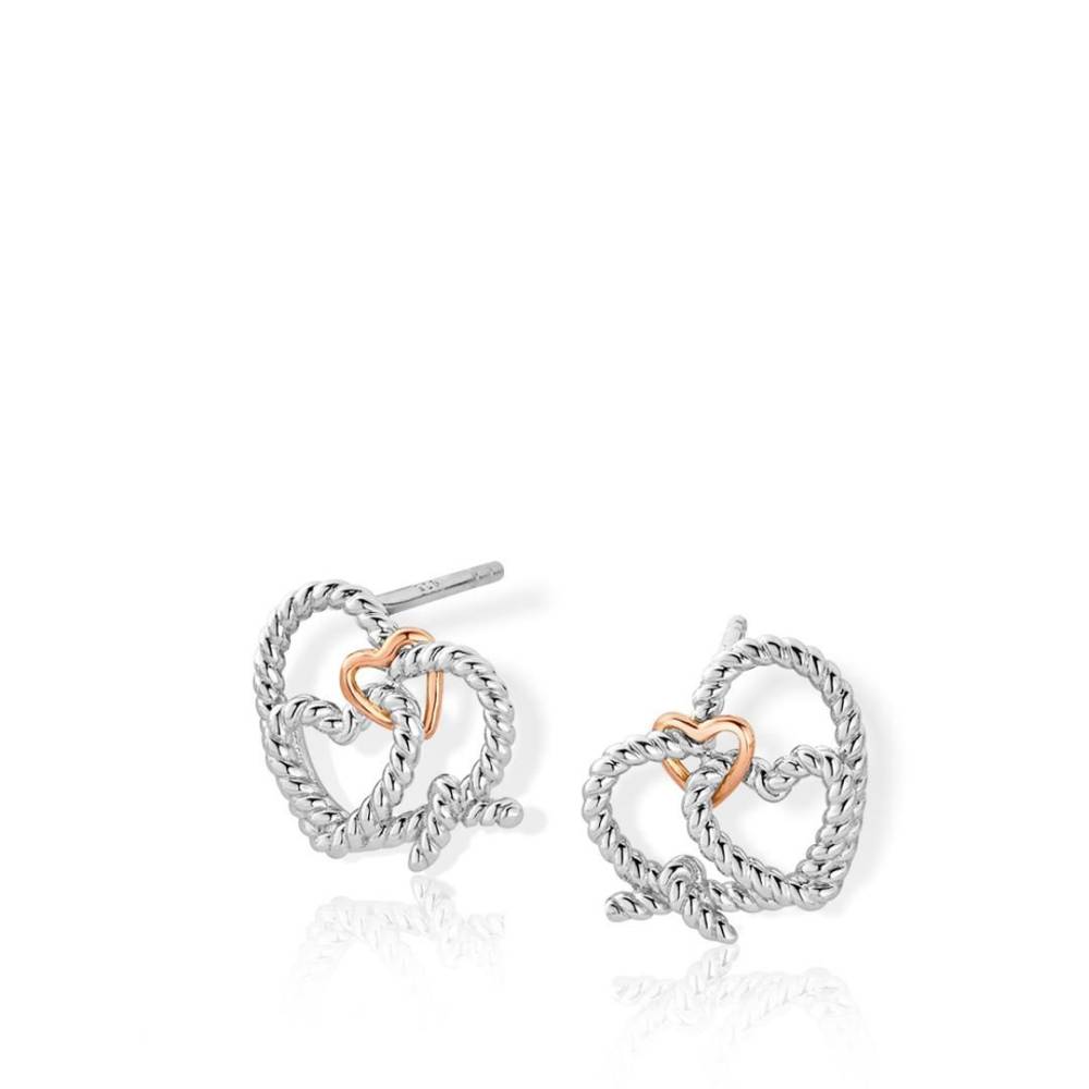 Clogau Bound Forever Silver Stud Earrings revives a time-honoured Celtic custom where a priest would unite the wrists of two lovers with a cord, symbolizing unwavering devotion and commitment. These exquisite Clogau Earrings showcases intertwining heart-shaped braids crafted from sterling silver, adorned with a 9ct rose gold heart, emblematic of an inseparable bond of love.