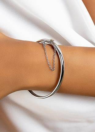 A friend is someone who understands your past, believes in your future, and accepts you just the way you are. Love and friendship are as timeless and valuable as the pieces defining the collection bearing these sentiments. ‘Cariad’ is a Welsh term of endearment. This slim oval Cariad® bangle captures the message of love and friendship, and caring for someone in the most distinctive way. Beautifully handcrafted in sterling silver, the Cariad® oval bangle features a charming 9ct rose gold fastening clasp and is inscribed with the Welsh word ‘Cariad’ and will perfectly compliment any outfit. The Cariad® bangle has a 7″ (18cm) inside circumference and is 5mm wide. The added protection of a subtle safety chain detaches on one side allowing for comfortable access. Containing rare Welsh gold, the gold of Royalty for over 100 years, theCariad® oval bangle has matching items available.
