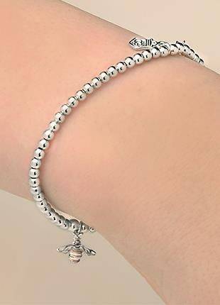 In the middle of spring, magic occurs, the beautiful honey bee buzzes back and forth carrying pollen from one blossom to another. In modern folklore this mesmerising creature serves as a charm for health, wealth and wisdom. This beautifully elegant Honey Bee Affinity stretch bracelet features a delightful honey bee charm. Crafted from sterling silver adorned with 9ct rose gold, this charming bracelet could be the perfect gift for a loved one or as a treasured keepsake for yourself.