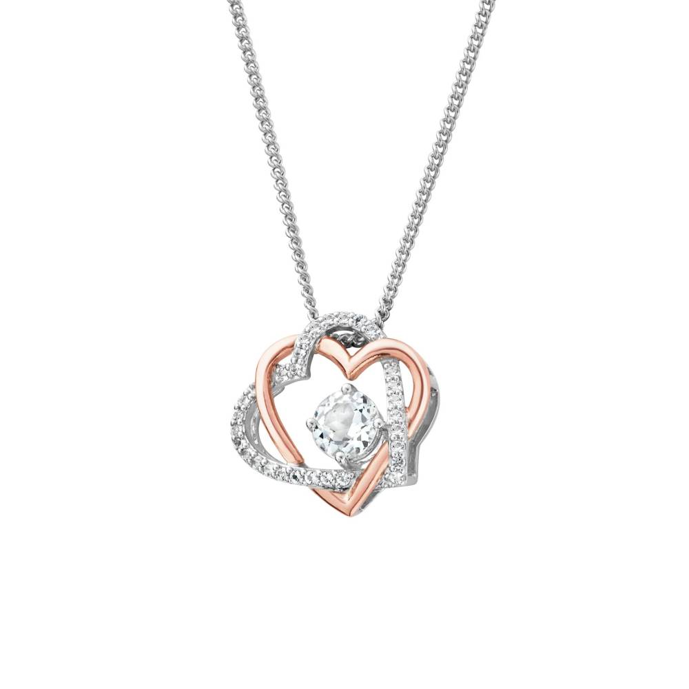 The Clogau ttimeless Always in My Heart Silver Pendant features two hearts entwined in everlasting love. Carefully crafted in sterling silver and 9ct rose gold, this pendant is given extra sparkle with the addition of round faceted white topaz gemstones. Show them you’ll never part with this endlessly romantic gift. Pendant size 15mm. This pendant comes on a silver 55cm chain that can also be worn at 50cm and 46cm.
