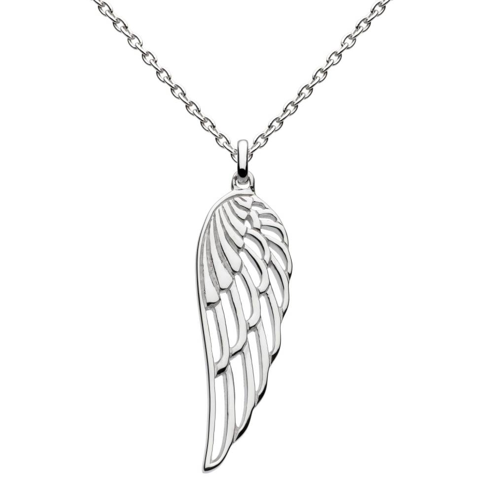 Sterling silver angel wing pendant on a silver chain.