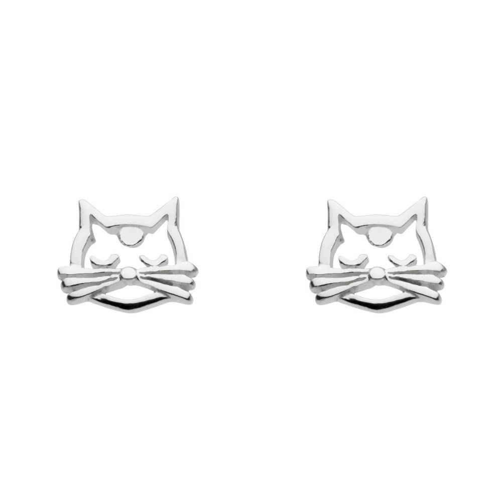 Sterling silver open cat face stud earrings.