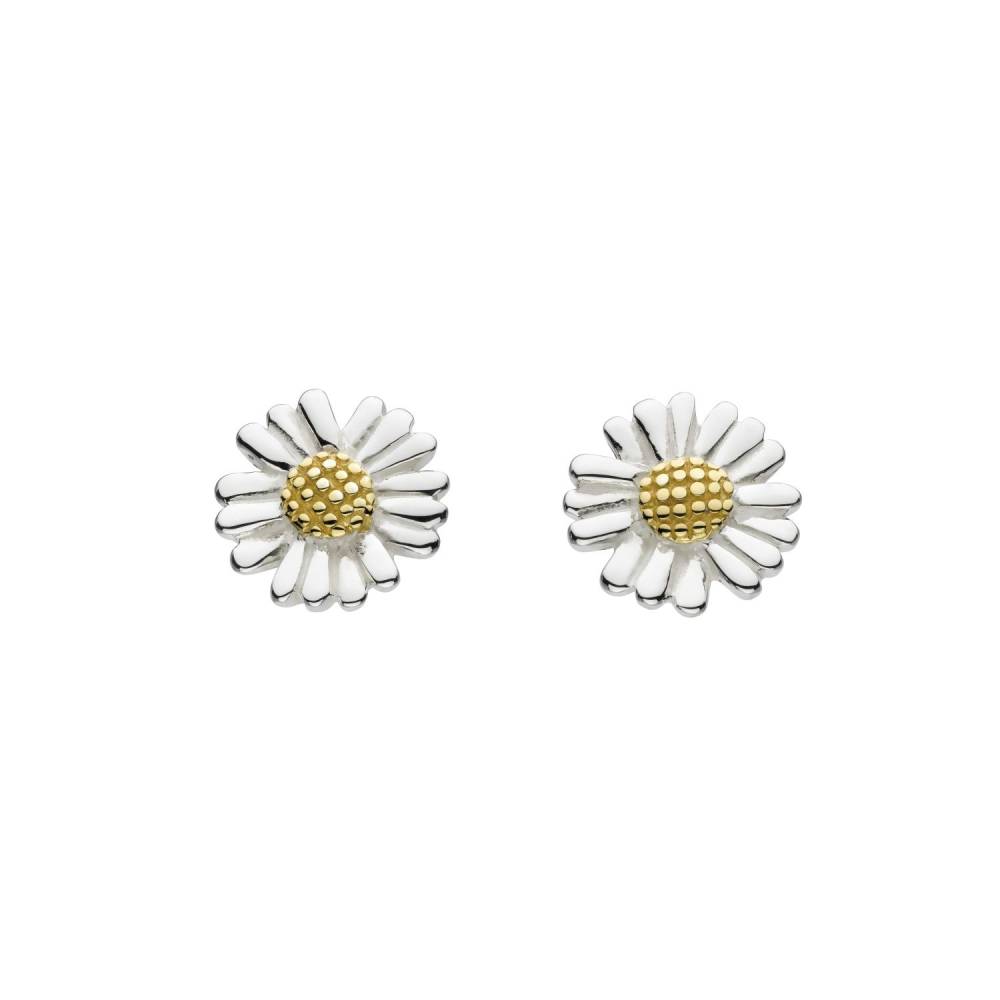 Sterling silver daisy stud earrings with a gold plated centre.