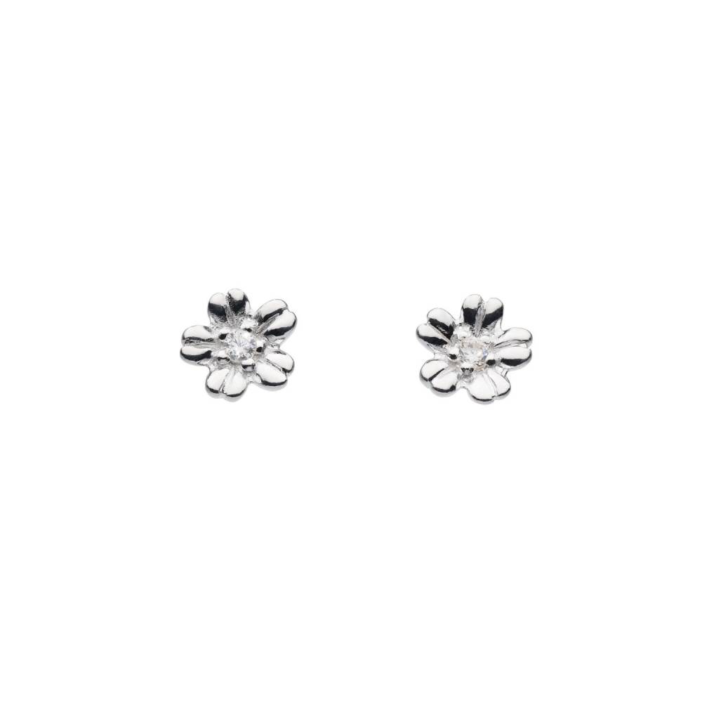 Sterling silver flower stud earrings set with a cubic zirconia in the centre for a little bit of sparkle.