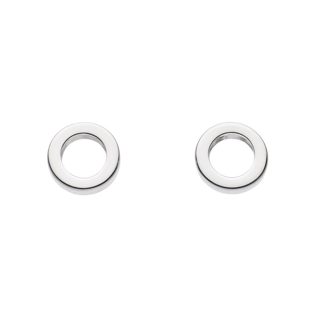Sterling silver open circle stud earrings.