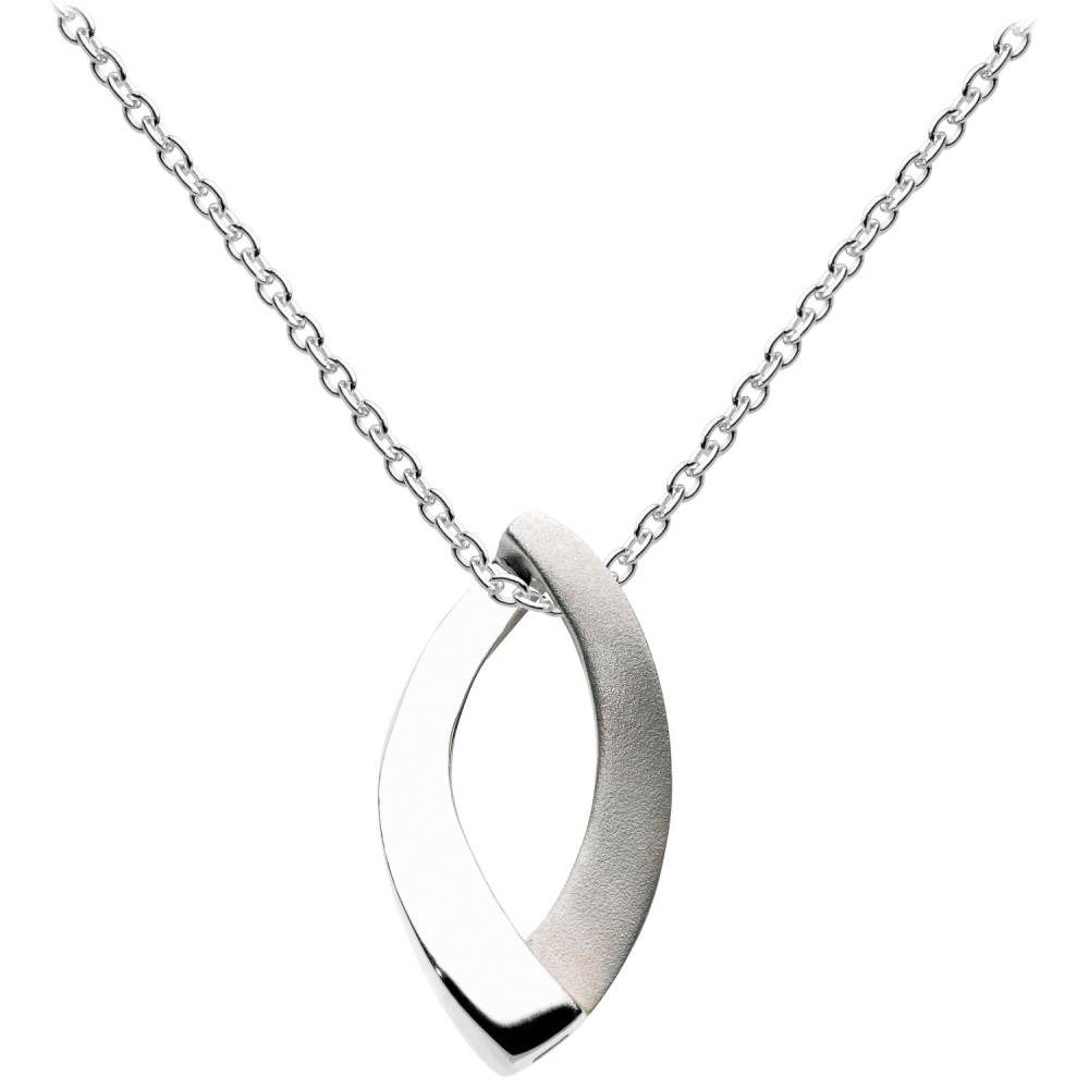 Stering silver open marquise shaped satin and polished pendat on a 16″ chain.
