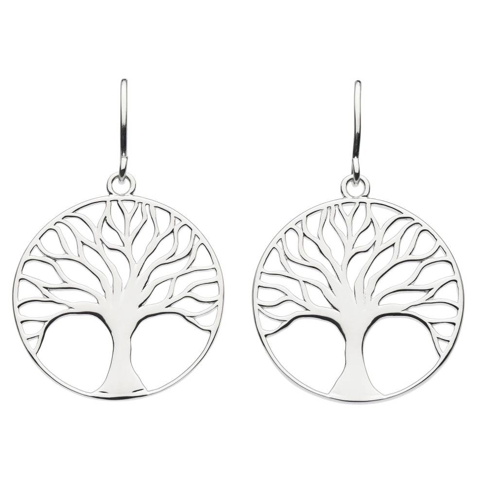 Silver tree of life symbol encased within a circle of sterling silver in these delicate drop earrings.