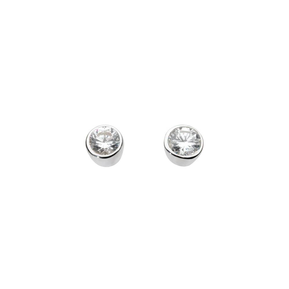 Sterling silver round cubic zirconia rub over set stud earrings.