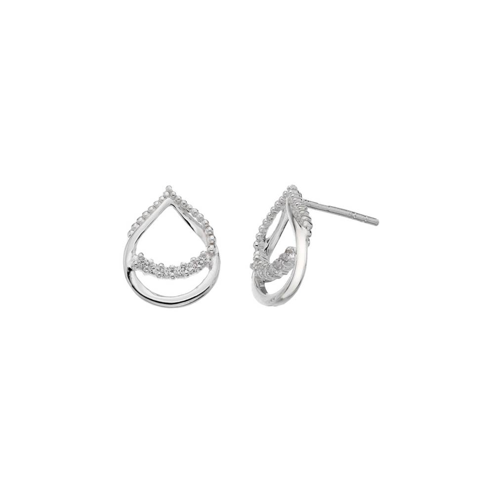 Dew sterling silver open teardrop loop stud earrings set with cubic zirconia.