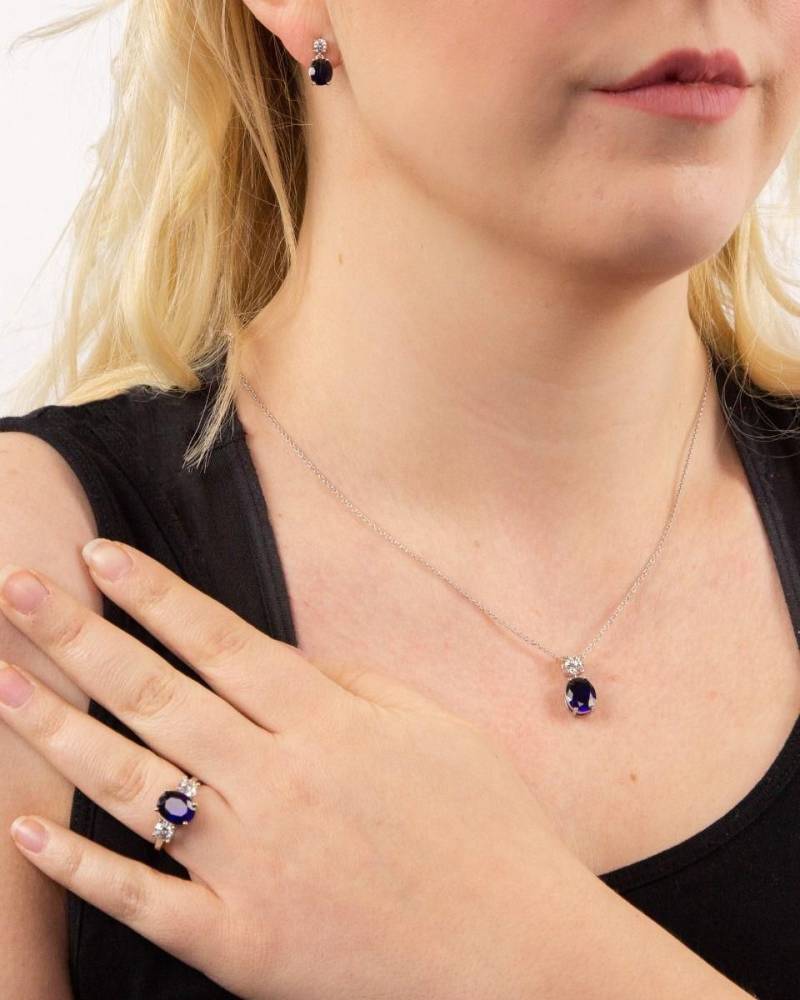 Diamonfire sterling silver oval sapphire coloured blue cubic zirconia and round cubic zirconia pendant on a silver 16-18″ chain.