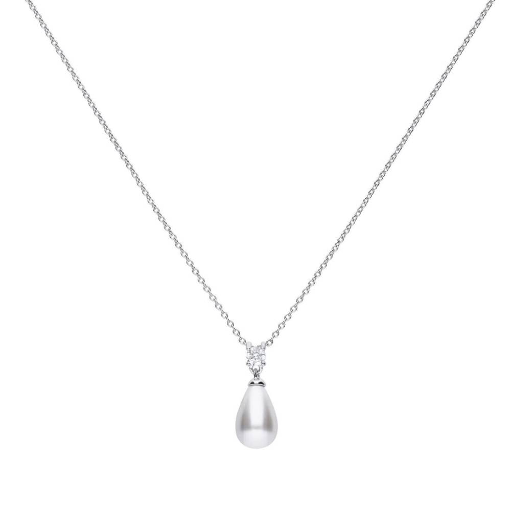 This dazzling 0.40 ct necklace with oval white shell pearl and Diamonfire cubic zirconia is perfect for adding extra sparkle to your outfit. Featuring Diamonfire cubic zirconia stones, cut specially with 57 facets just like a real brilliant cut diamond. Made from sterling silver with a triple plated finish of palladium, platinum and rhodium for an almost life-long tarnish protection. 43-45cm adjustable chain.
