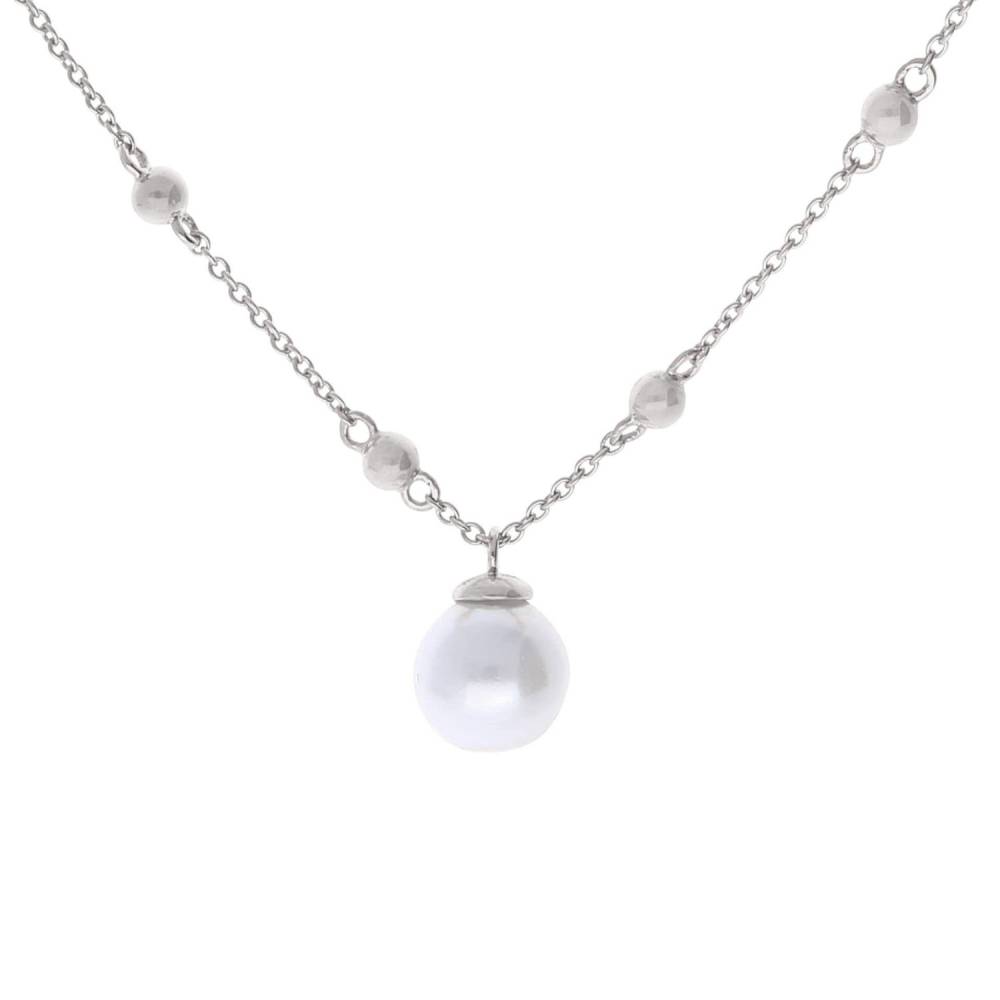 Diamonfire sterling silver pearl drop pendant on a silver ball station chain. An ideal bridal look.