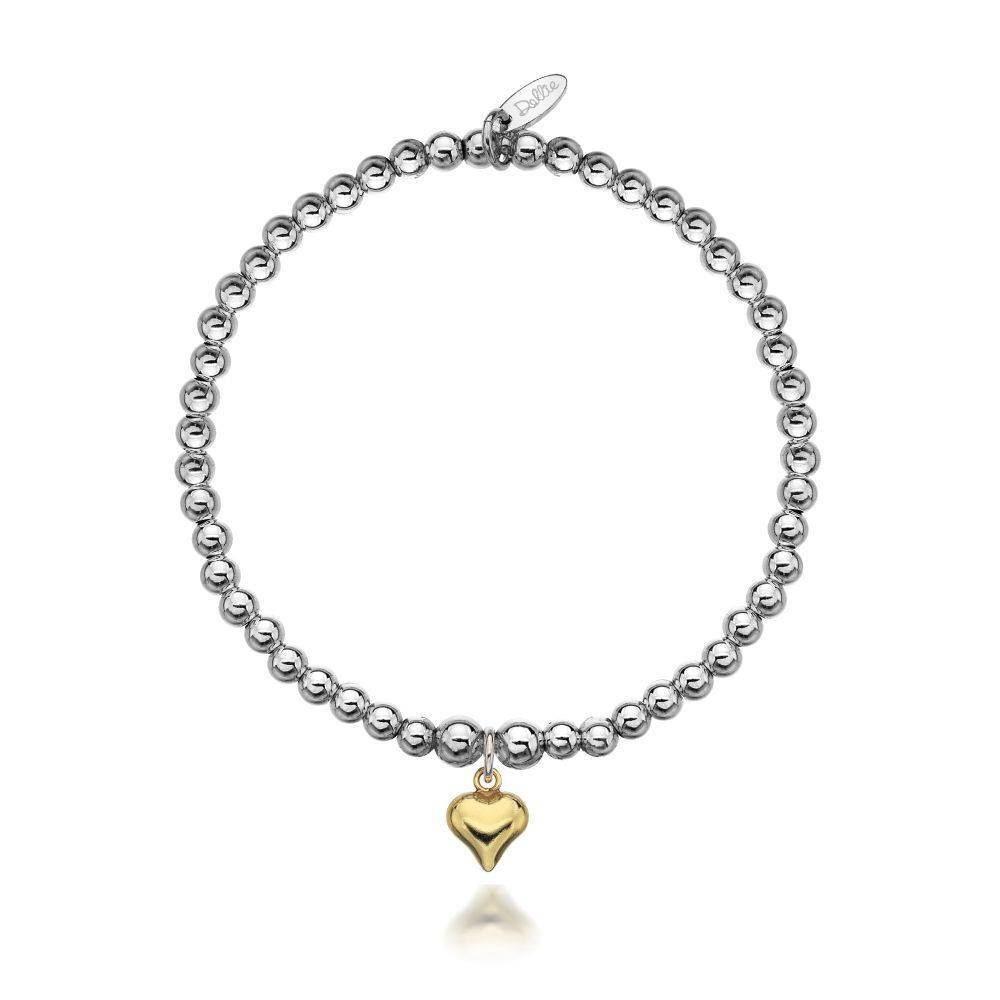 Dollie sterling silver beaded bracelet with a golden gold plated heart charm.