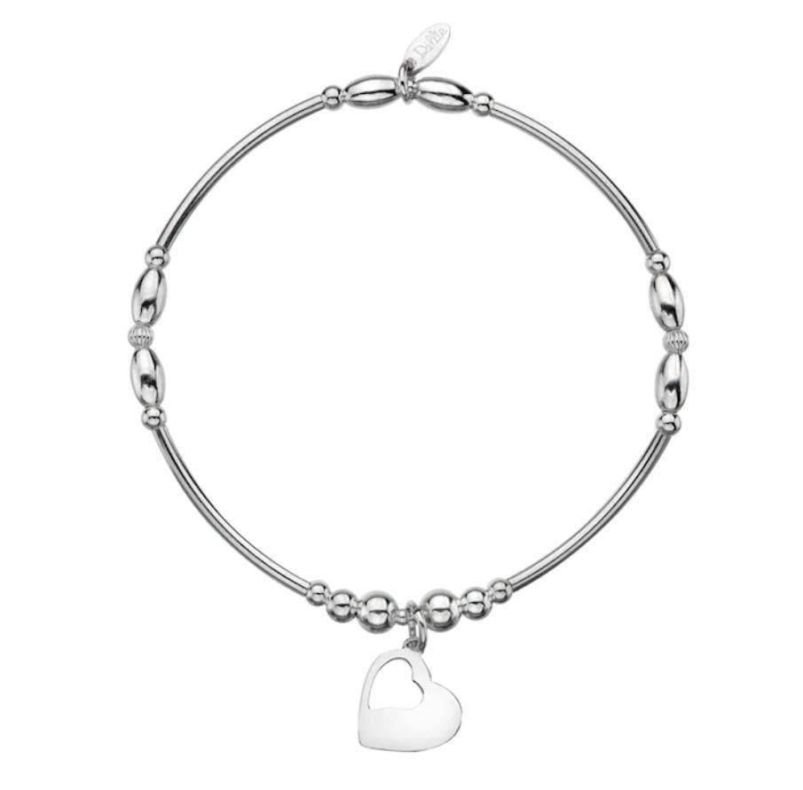 Dollie sterling silver tube and bead bracelet with a heart in heart charm.
