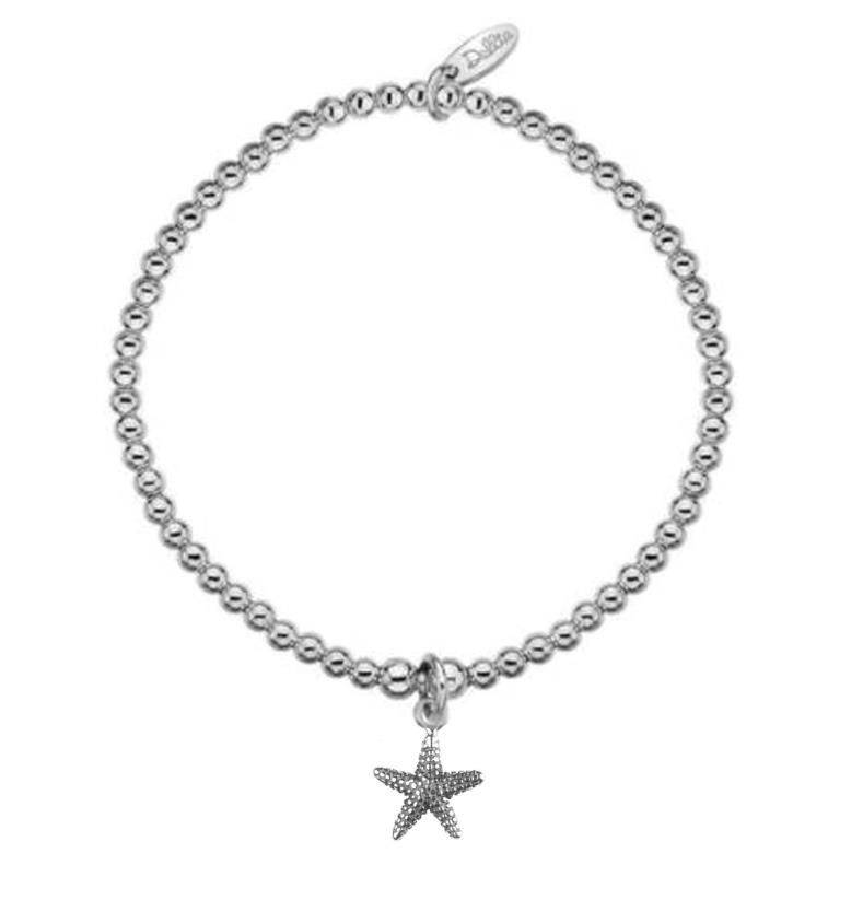 Dollie sterling silver 3mm bead bracelet with a starfish charm. Elastic bracelet, making it really easy to wear.