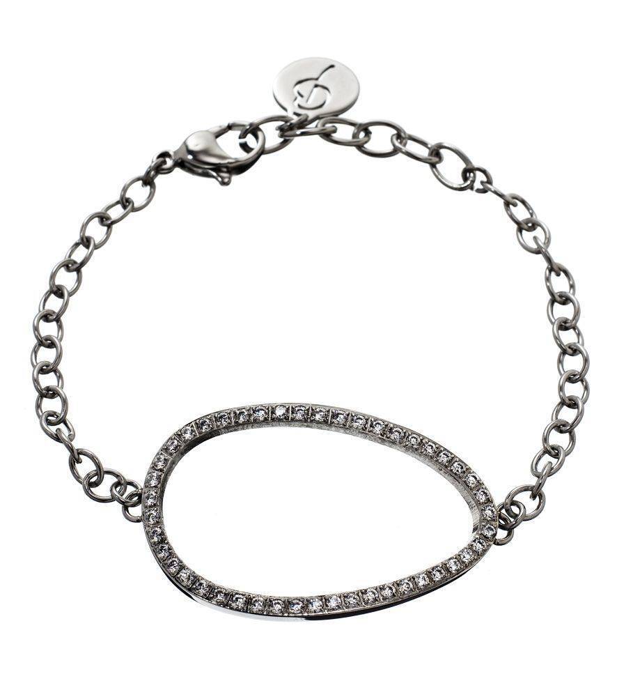 This Edblad bracelet is made from shiny stainless steel and is a fine bracelet with a large open oval in the centre set with sparkling cubic zirconia.