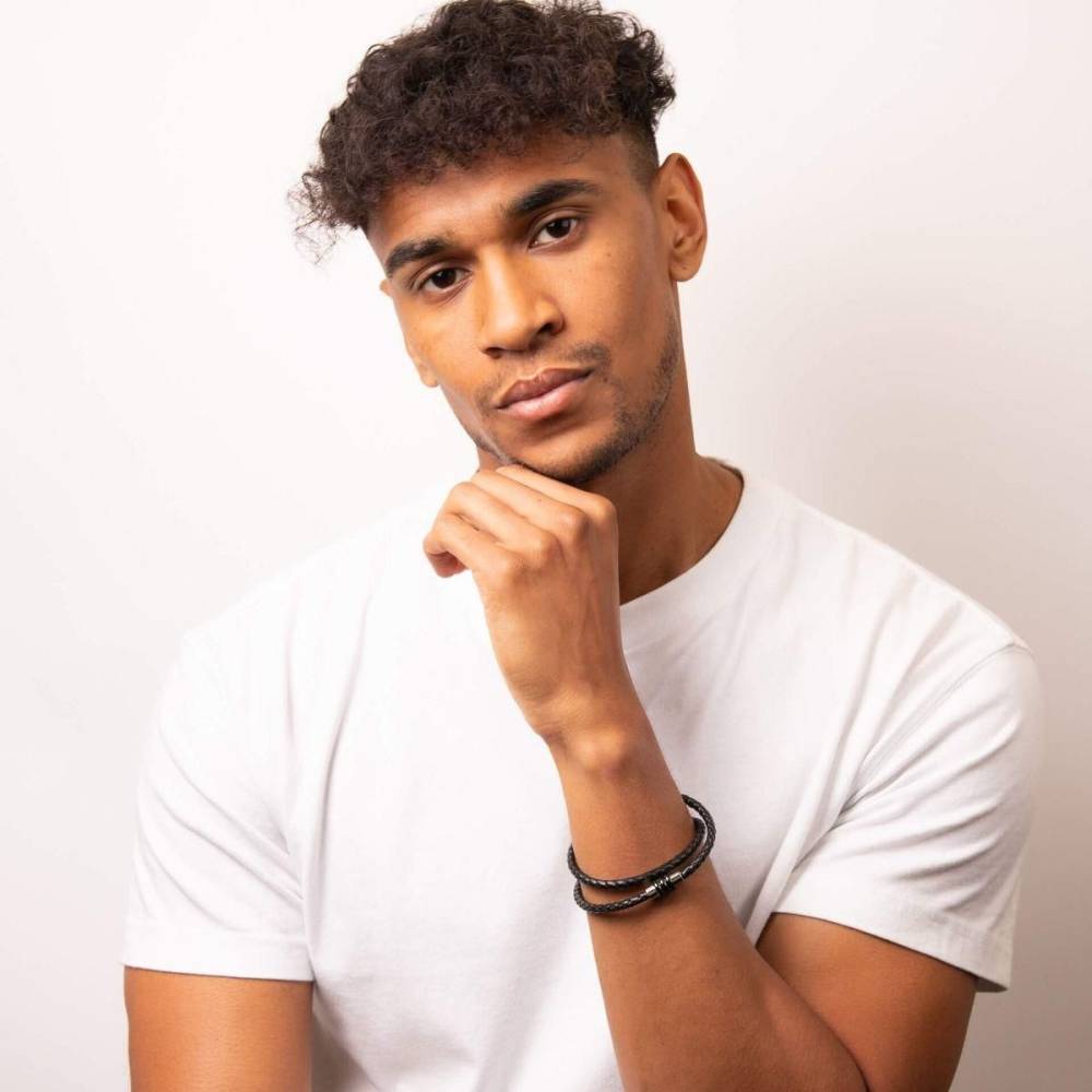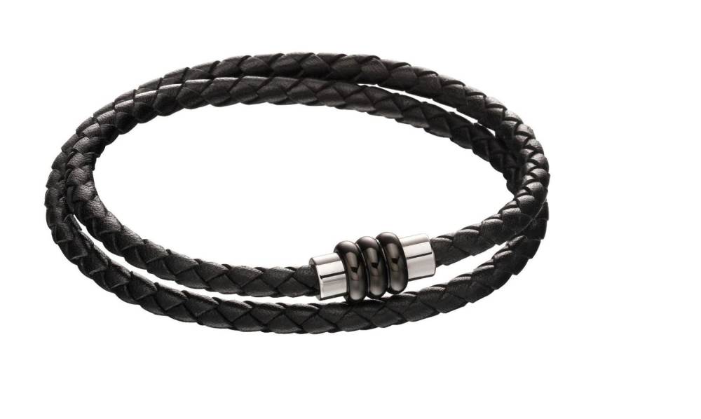This bracelet is crafted in genuine leather and features a longer length in order to wrap around the wrist twice, creating a double row effect. With a stainless steel magnetic clasp, this bracelet will make a great gift for a loved one. Length 43cm.