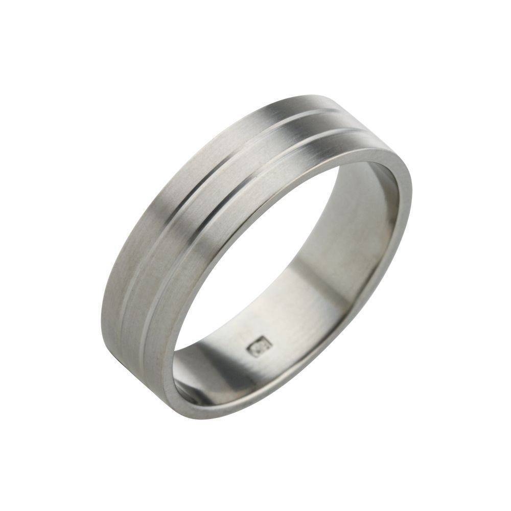 Gents Titanium low profile matt finish wedding ring with a two line design.