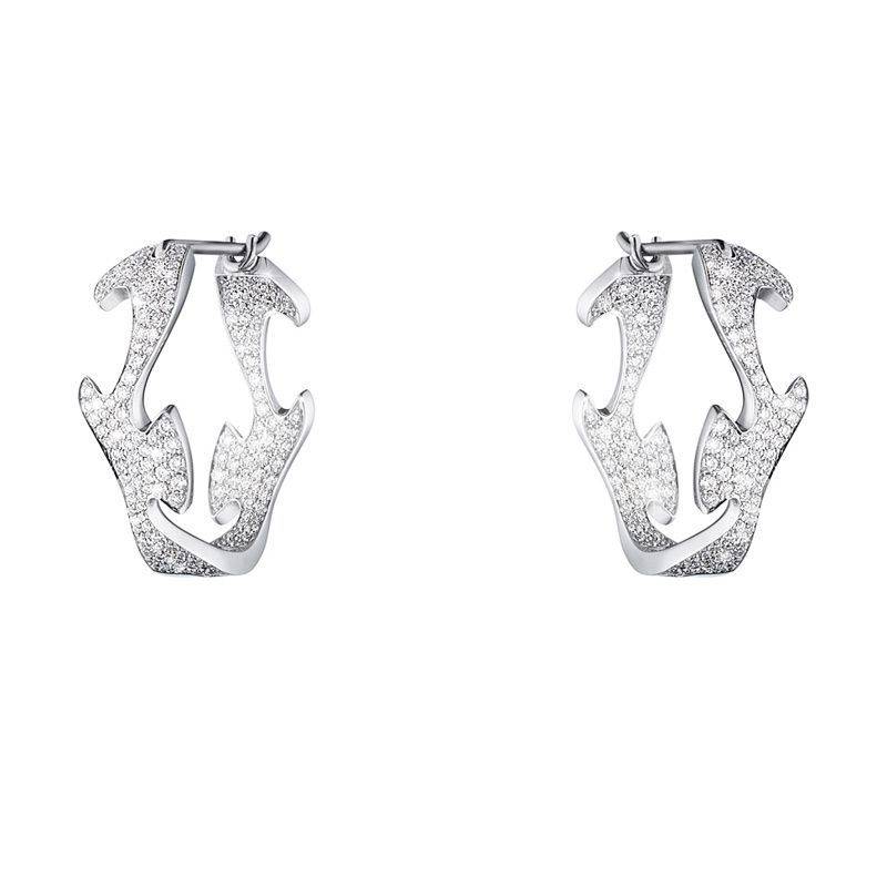 Georg Jensen 18ct white gold earrings pave set with brilliant cut diamonds on the outside of the front of the earings and pave set with brilliant cut diamonds on the inside of the earring. From the Fusion collection these earrings are an exquisite design.