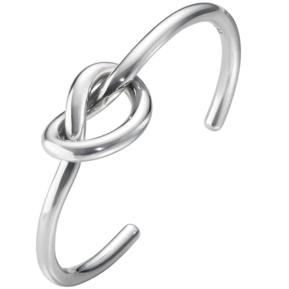 Georg Jensen sterling silver love knot bangle. Size medium. With the utmost elegance and fluidity, a single strand of sterling silver twists itself into a knot and wraps around the wrist in this stunning bangle. Symbolising eternal love, the unbreakable bonds of a relationship or even to serve as a reminder of a significant event, the bangle would make an impactful gift to the special woman in your life.