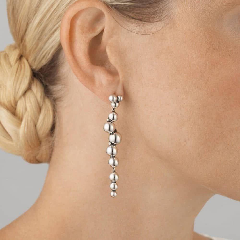Georg Jensen Moonlight Grapes Long Dropper Sterling Silver Earrings are made from sterling silver and measure 2.32 inches.