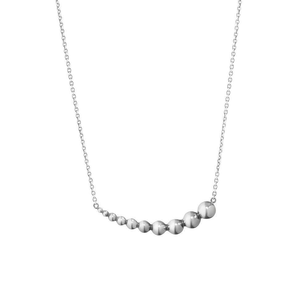 Georg Jensen Moonlight Grapes pendant is sterling silver with the graduated grape centre piece sitting horizontally across the neck. Length 45cm.