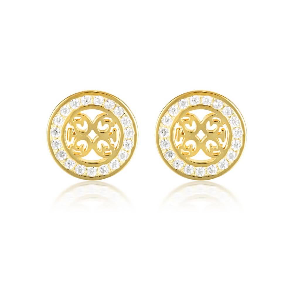Georgini gold plated signature medallion stud earrings set with cubic zirconia.