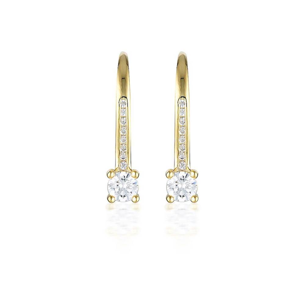 Georgini gold plated huggie style hoop earrings set with sparkling cubic zirconia. These earrings are 18ct gold plated on sterling silver.