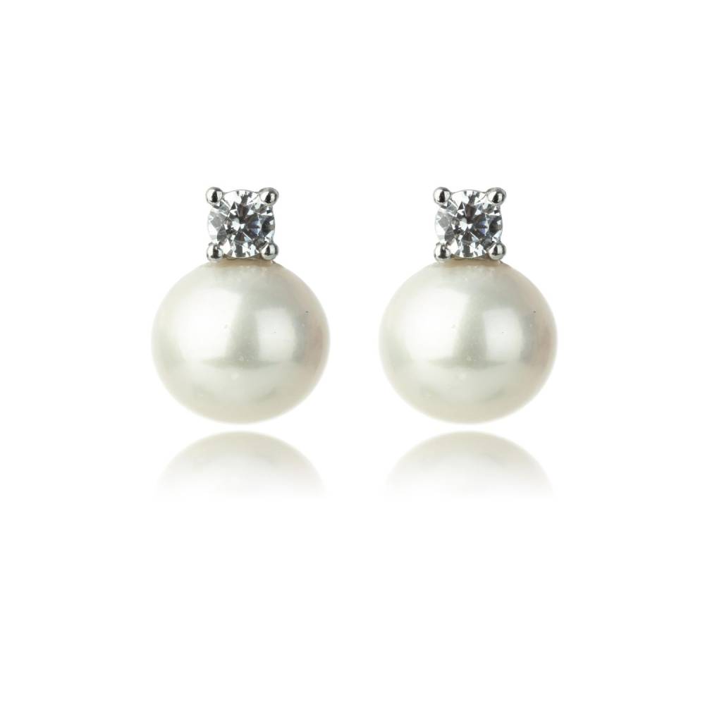 Georgini sterling silver freshwater pearl and cubic zirconia stud earrings. The Georgini Noosa collection is inspired by Noosa, a coastal town on the Sunshine coast in Queensland, Australia.