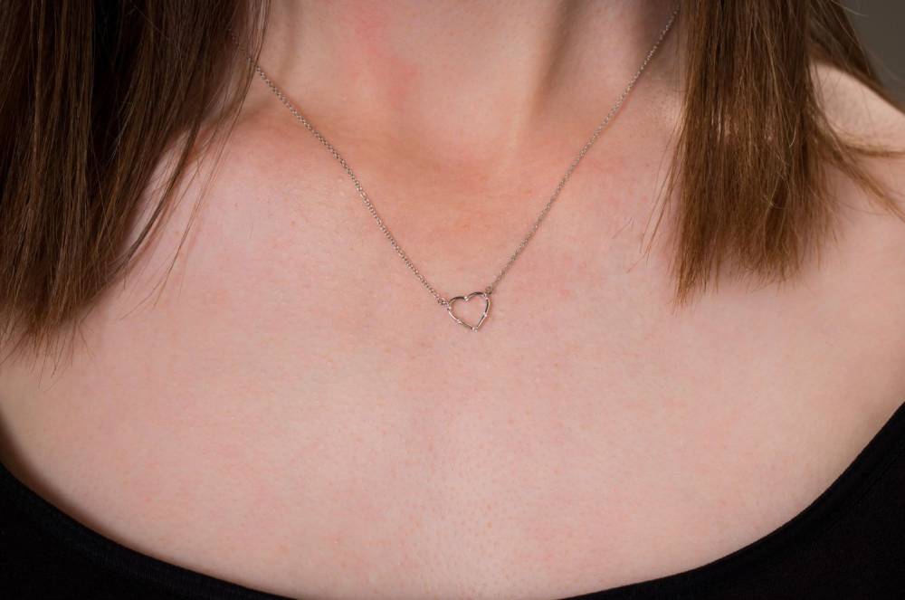 Georgini sterling silver open heart pendant set with light pink cubic zirconia. Length 41-46cm.