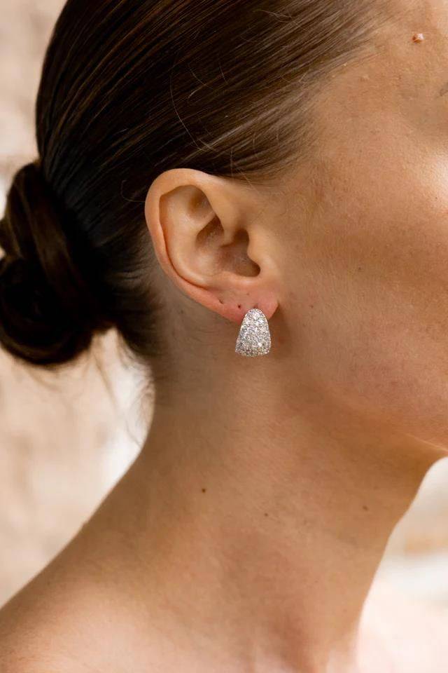 These earrings epitomise elegance with their multi-sized pavé-set cubic zirconia arrangement, radiating brilliance and sophistication. Each half-hoop earring showcases a unique slim-to-wide taper design, measuring approximately 16mm in length. Crafted in rhodium plated sterling silver.