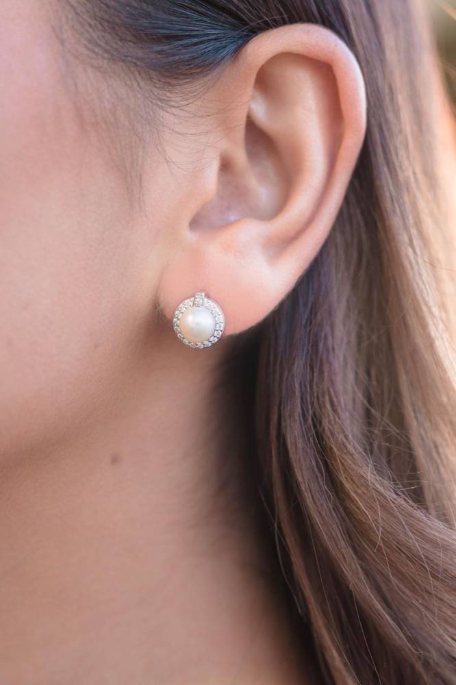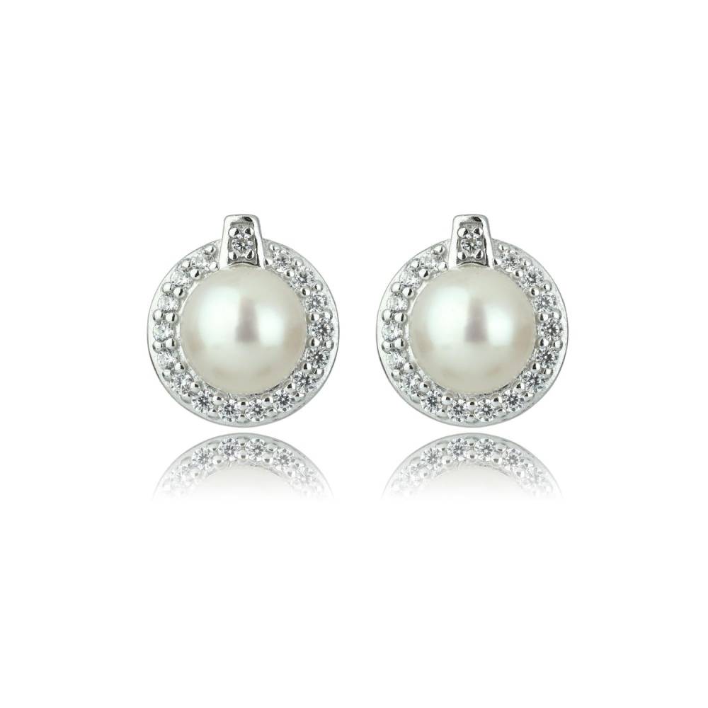 Georgini sterling silver freshwater pearl and cubic zirconia halo style stud earrings. Inspired by the beauty of the Tasman sea located between Australia and New Zealand.