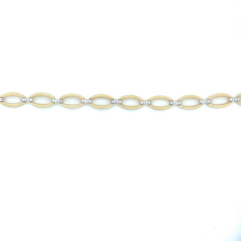 Gold plated on silver open oval link bracelet set with cubic zirconia. This bracelet has a matching necklace.
