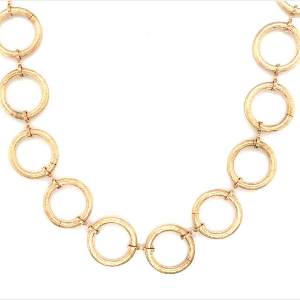 Silver gold plated round open link necklace with a satin finish. Length 44cm.