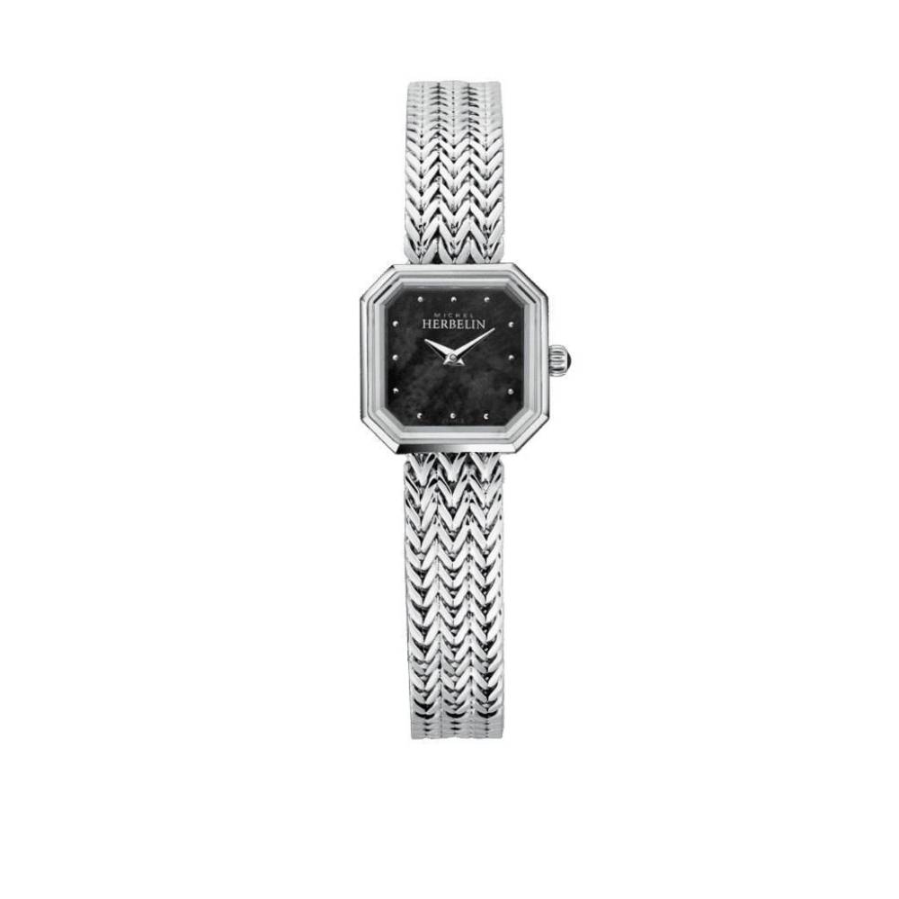 The French Watchmaking Workshop Herbelin presents a new collection called Octogone. Identifiable at first glance by its minimalist aesthetic, this first model reveals a concentrate of elegance. Deliciously precious. Definitely modern. Herbelin ladies stainless steel watch, octogonal black dial on a fancy flat link bracelet. This watch is powered by a Swiss quartz movement and has a sapphire crystal glass. Case approx 22mm.