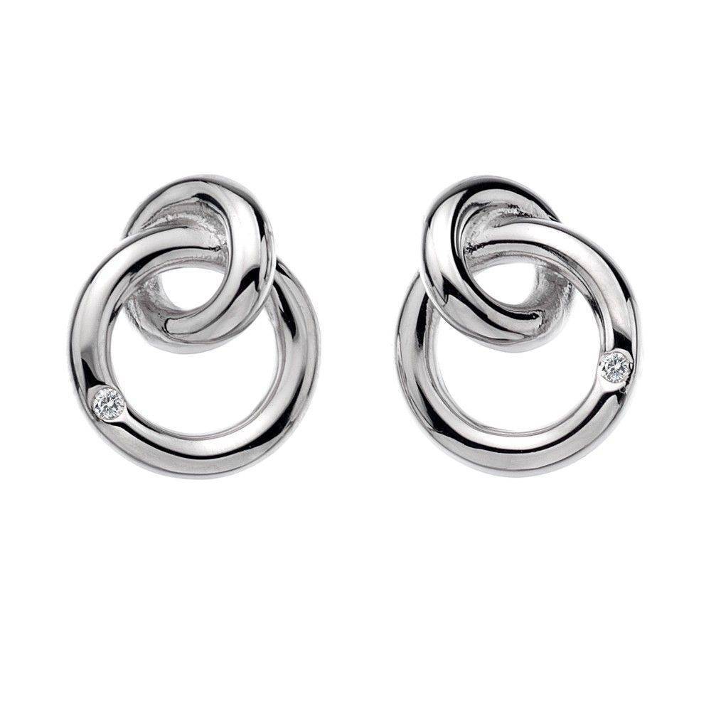 Hot Diamonds sterling silver interlocking circle Eternity stud earrings. Each earring is set with a beautiful real diamond.