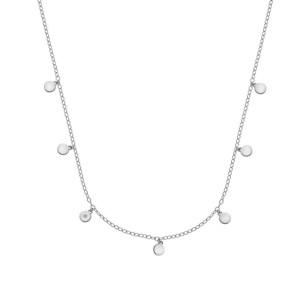 Hot Diamonds sterling silver Monsoon necklace in a station style with round discs one set with a diamond. Length 45cm.